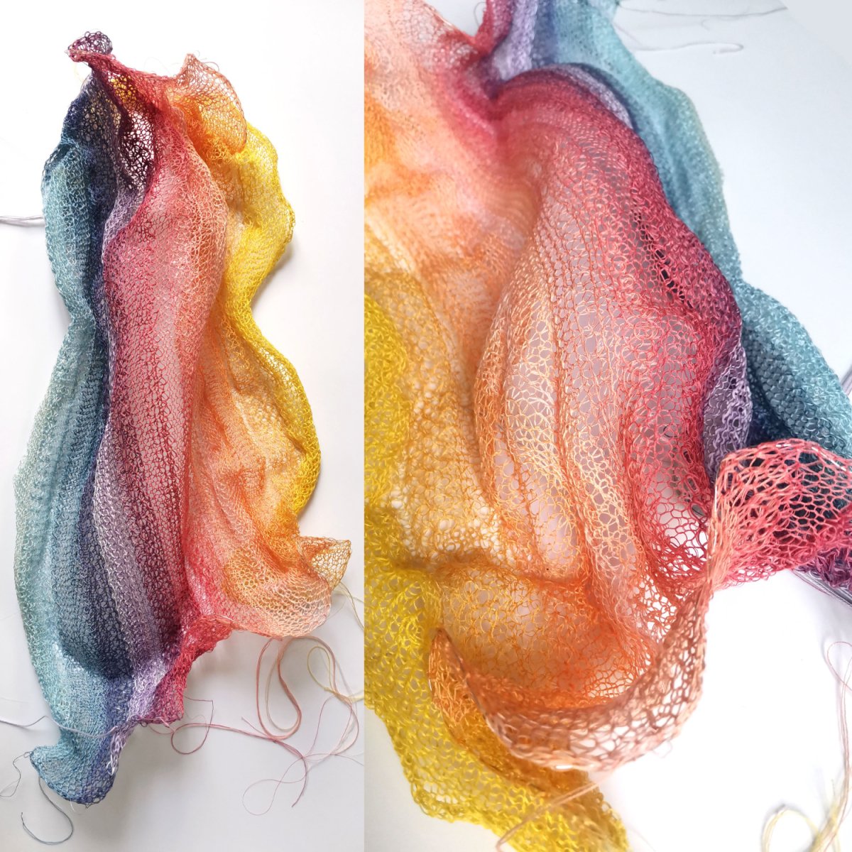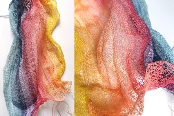 – création de tricots contemporains à la manière de nos grands-mères sur des machines mécaniques anciennes : accessoires mode et décoration, passementerie, pièces artistiques, je tire le fil des possibles à partir de matériaux de réemploi ;