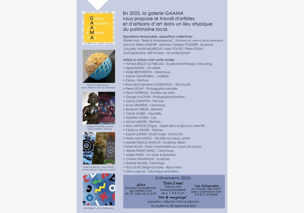 La GAAMA est « un pôle des métiers d’art » qui propose également des ateliers et des stages au public et aux professionnels, encadrés par nos artistes et artisans d’art.