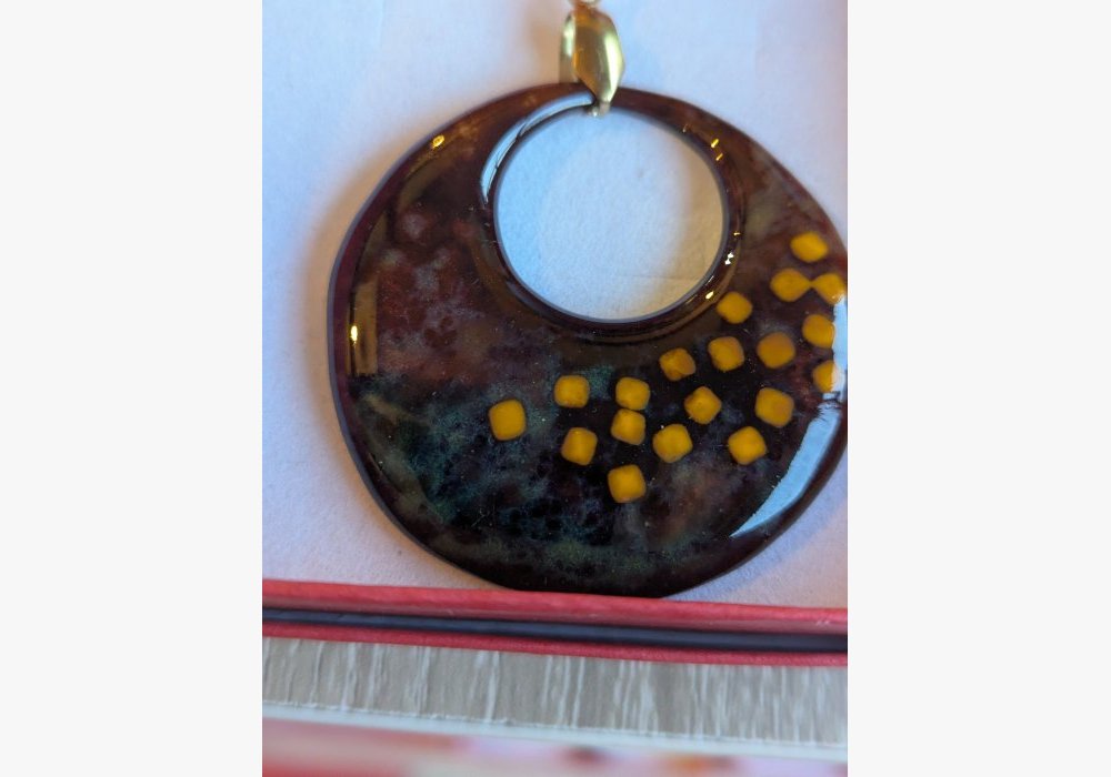 Je crée des bijoux ainsi que de petits objets décoratifs en émail sur cuivre et tombac. L’ensemble de mon travail est réalisé de manière artisanale, depuis la préparation des supports métalliques jusqu’à l’émaillage et les cuissons successives au four. Ces techniques nécessitent une parfaite maîtrise des matériaux, des températures et des gestes propres au métier d’émailleur sur métaux.