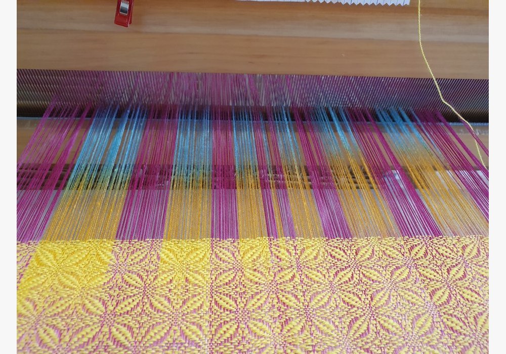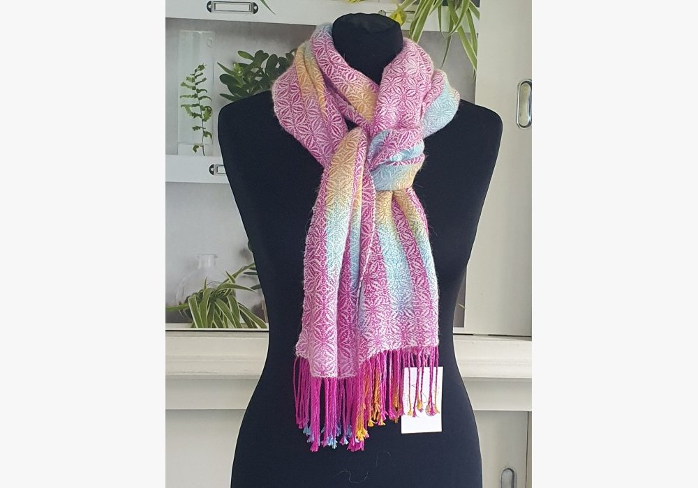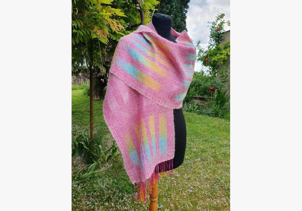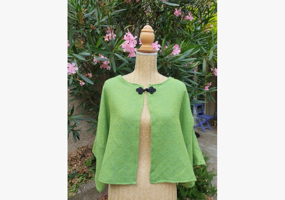 Tisserande sur métier à bras je réalise des tissus destinés à l’habillement comme des étoles, vestes, ponchos mais aussi des accessoires comme des sacs ou des pochettes. Tous mes tissus sont transformés par mes soins à l’atelier.