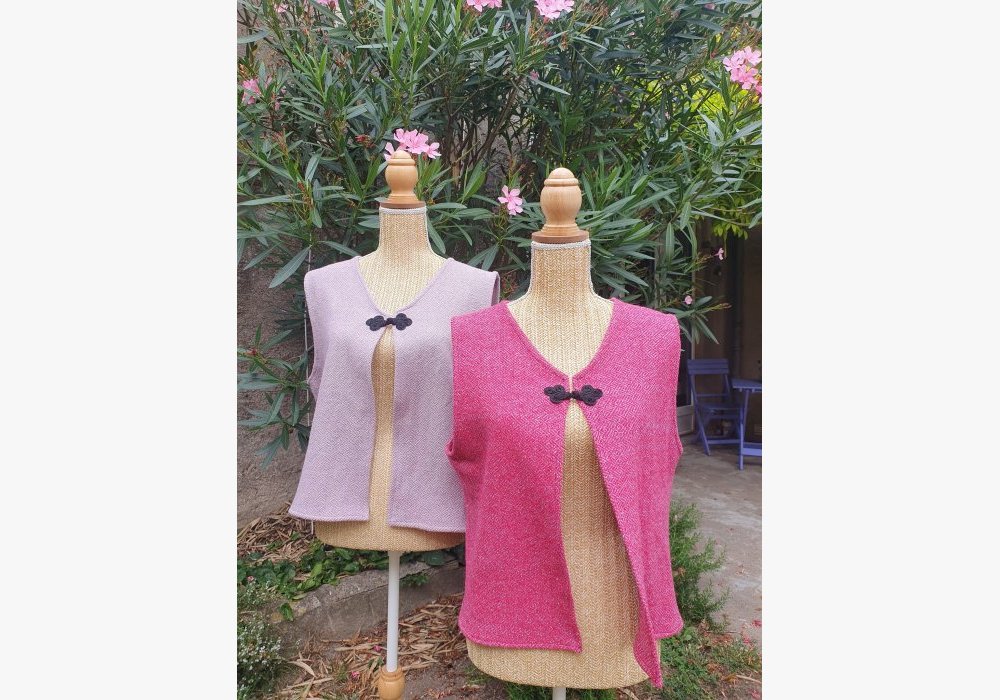 J’utilise des matières nobles, alpaga , soie, mérinos,issues de filatures françaises ou européennes mais aussi des fibres mixtes, pelotes oubliées dans des greniers ou autres placards, que je récupère et auxquelles j’offre une nouvelle vie.