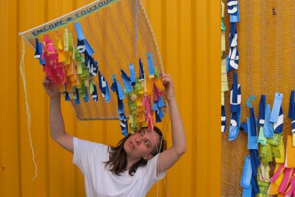 – ateliers pédagogiques, sensibilisation et créations collectives (tricot machine individuel ou collaboratif, surcyclage de textiles usagés, conférences sur la pollution et la surconsommation textile, etc.).