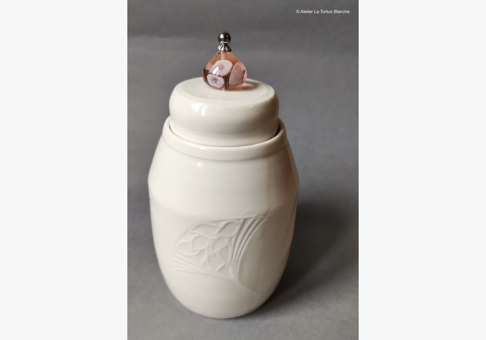 Depuis peu, j’ai ajouté à ma pratique de céramiste celle de fileuse de perles au chalumeau . Ainsi je réalise des pièces uniques où ces deux matières se révèlent l’une l’autre , en écho