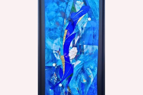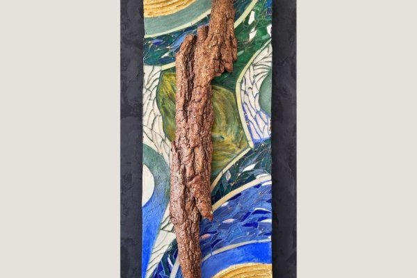 En associant en particulier le verre (vitrail, coloré, autres) aux éléments naturels : écorces, bois, pierres, marbre, sublimés par l’éclat et la couleur du verre, je recherche l’harmonie dans les contrastes, donnant vie à des œuvres où lumière et textures dialoguent.