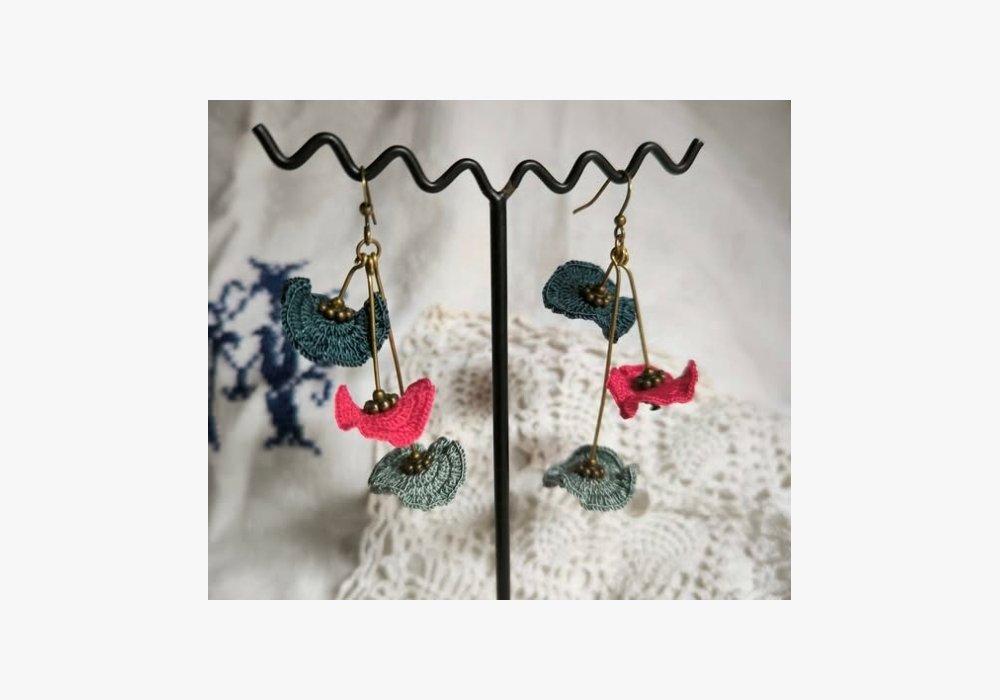 L’utilisation d’un fil dédié aux dentelières, patiemment domptée, confère une minutie visible dans la gamme de bijoux fantaisie CRÉANATH.