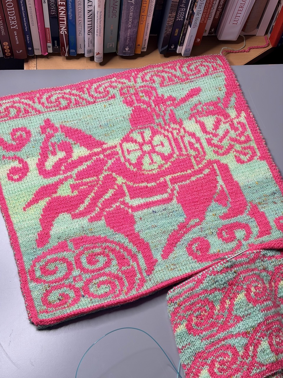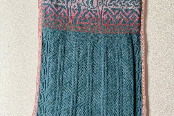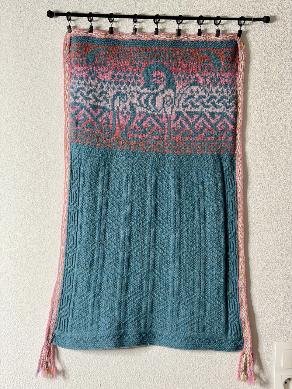 Je descends d’une longue lignée de fileuse et de dentelières, ce n’est donc pas étonnant que depuis toute jeune je me suis passionnée pour la fibre et les textiles : leurs compositions, la façon dont c’est fabriqué… c’était alors une évidence d’apprendre les arts de la fibre et le design. Pour moi, il n’est pas juste question de fabriquer une Tenture mais plutôt de raconter l’Histoire ; de retrouver des techniques ancestrales, d’utiliser le savoir-faire qui peut remonter aussi loin que le temps des Vikings. Le monde actuel a dénigré le tricot en le catégorisant comme un « hobby ». De ce fait, nous avons perdu les savoirs faire des Guildes du moyen-âge : la connaissance des fibres animales, les différentes façons de les préparer selon les qualités souhaitées. Il en va de même pour la confection au tricot : les points, le travail avec les couleurs, rien n’était fait par hasard et encore moins par effet de mode. Tout avait un sens et un but.