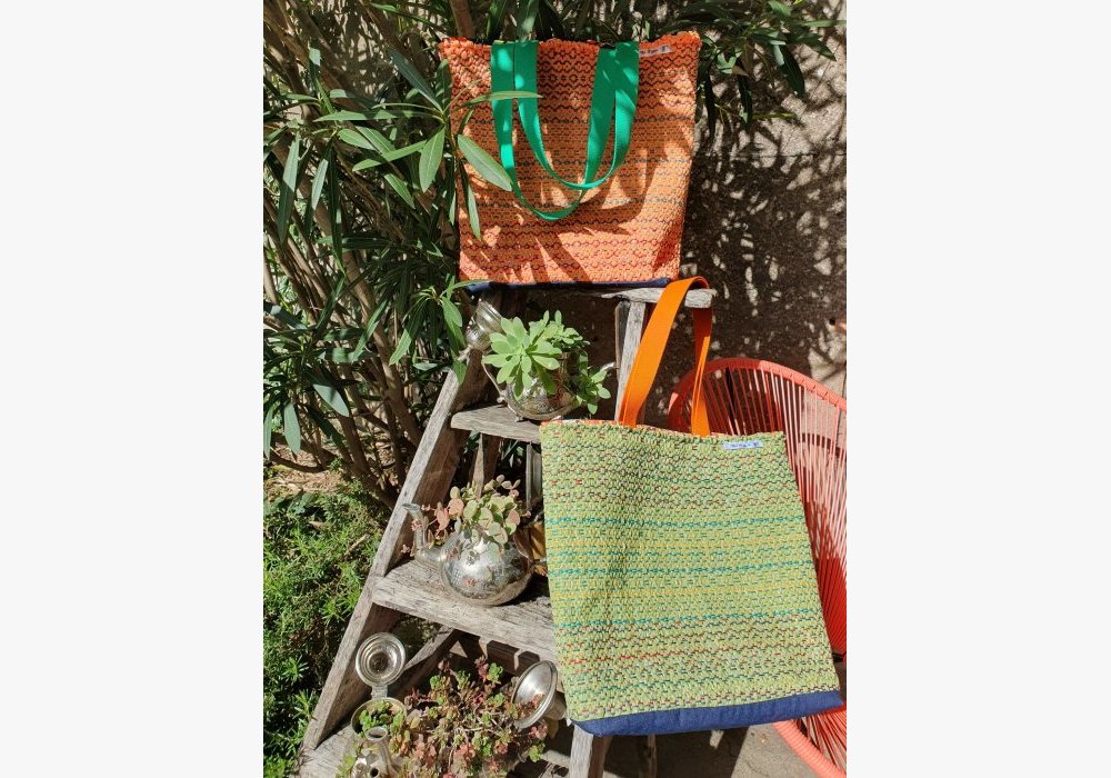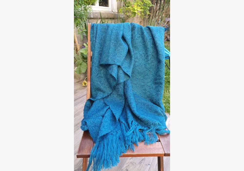Tisserande sur métier à bras je réalise des tissus destinés à l’habillement comme des étoles, vestes, ponchos mais aussi des accessoires comme des sacs ou des pochettes. Tous mes tissus sont transformés par mes soins à l’atelier.